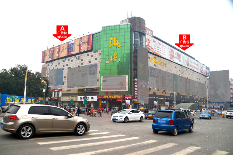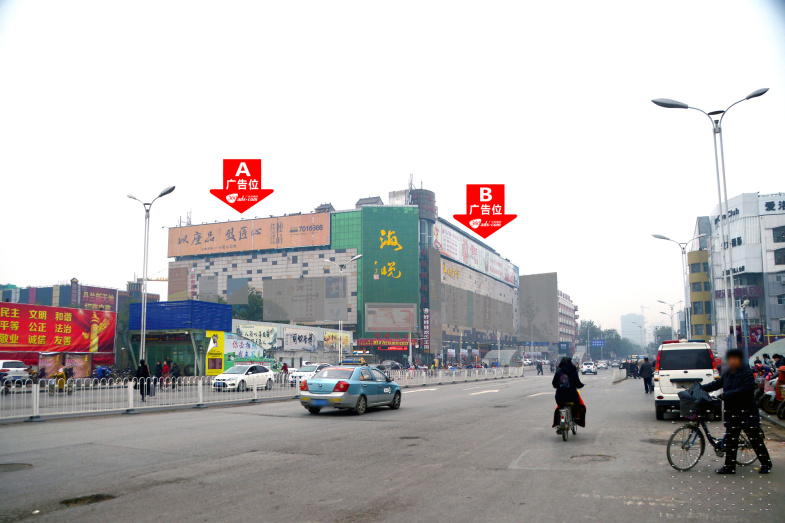 陵西大街与和平路交汇处东南角海悦轻纺城楼顶大牌